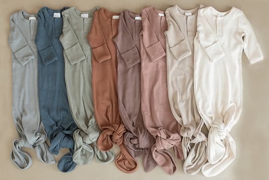 Oatmeal Organic Cotton Ribbed Knot Gown