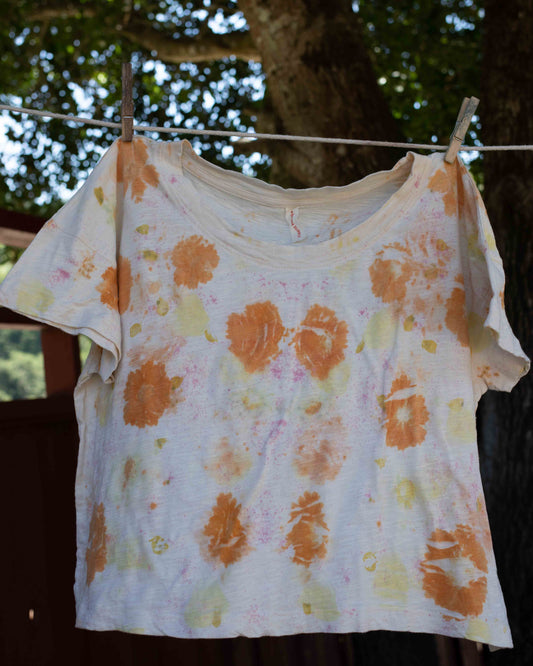 intentional, slow fashion, natural materials, hand dyed with botanical dyes and home grown flowers ...