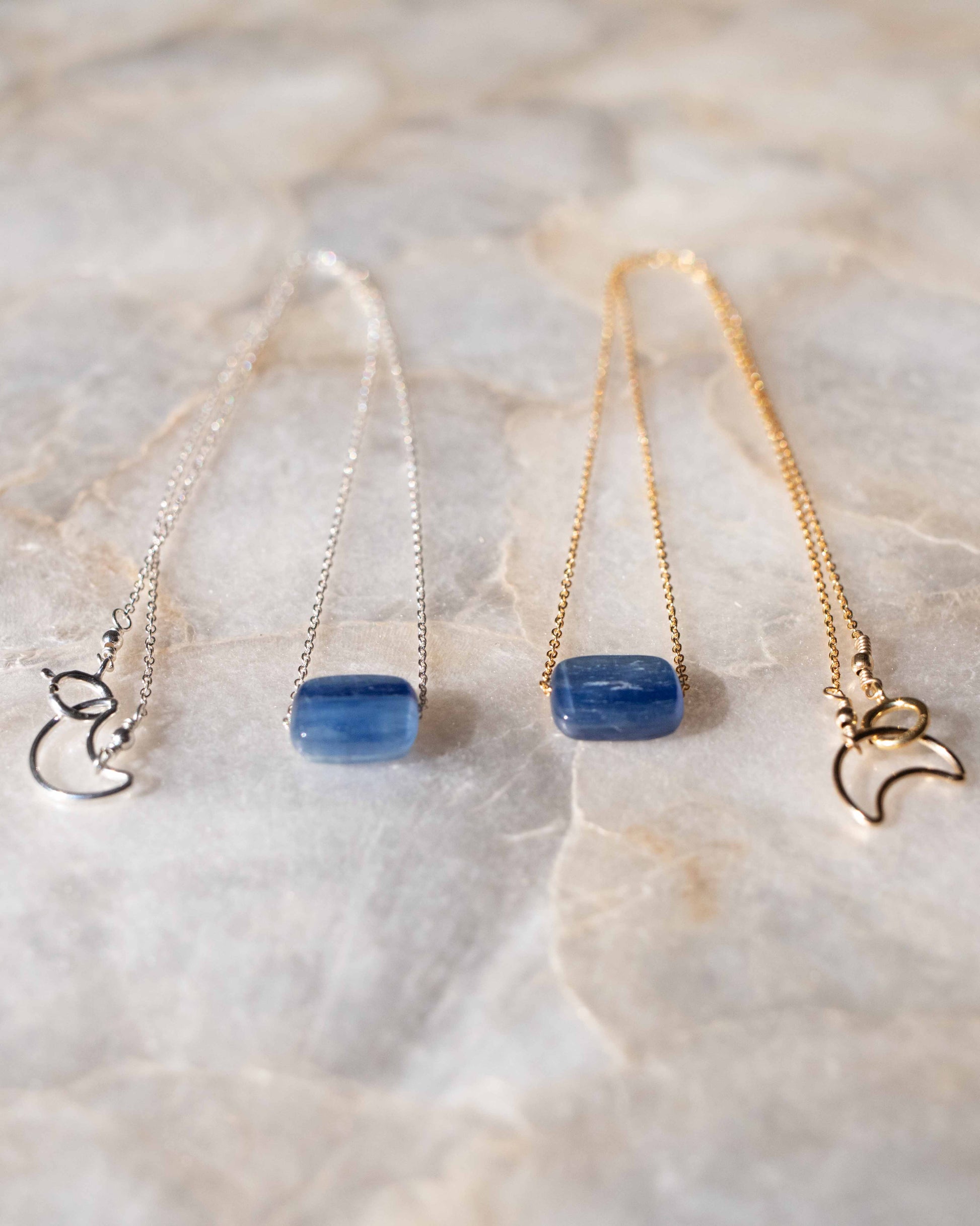 You may guessed with its blue color, it’s believed to help unblock your throat chakra. You can choose your own length between 14-18 inches so it can sit right in your throat! The necklaces were handmade by my own mama, Carol, of For The Love of Violet and my sister @spacedbandit . Available in 14k Gold Filled or Sterling Silver. The clasp is our favorite crescent moon!
