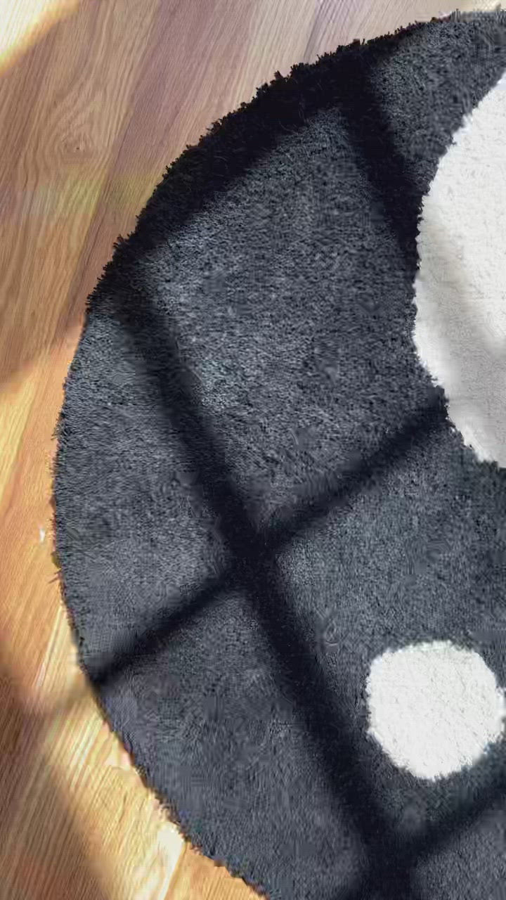 Sit in ceremony on this plush and padded rug. The ancient Yin Yang symbol was created as early as 600 BCE in China . It reminds us how obviously opposite energies may actually be complementary, interconnected, and interdependent. Without the light there is no dark, without the dark there is no light. It embodies the harmony of the seemingly chaotic universe.