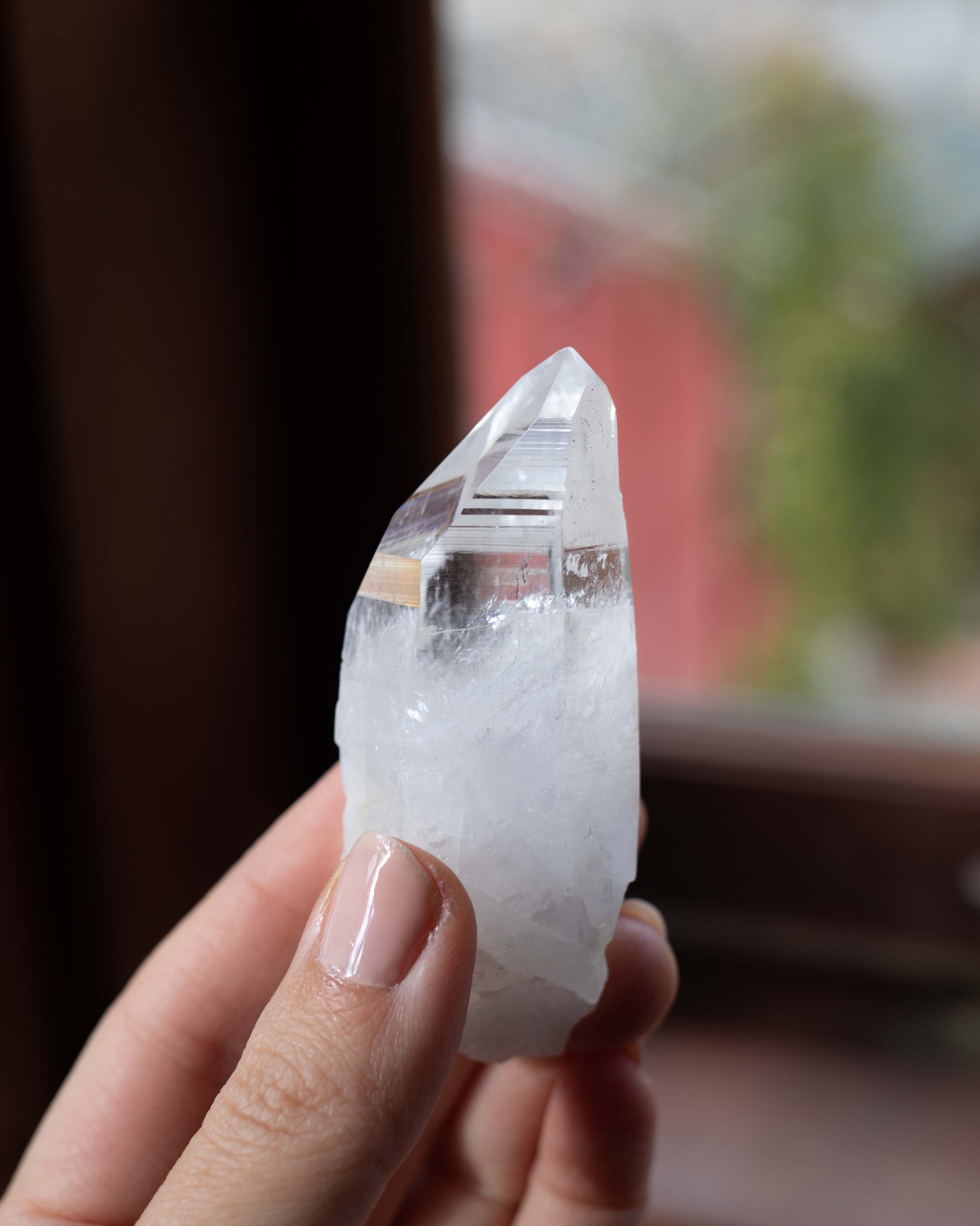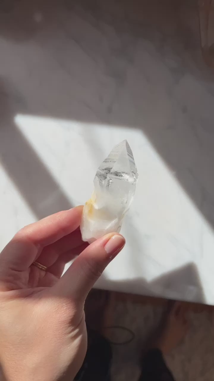 This piece is also known as a Lemurian, with groves and ridges around it. It is believed to have lemurian crystal energy, incredible clarity & believed to be connected to the ancient / mythical lemurian culture.