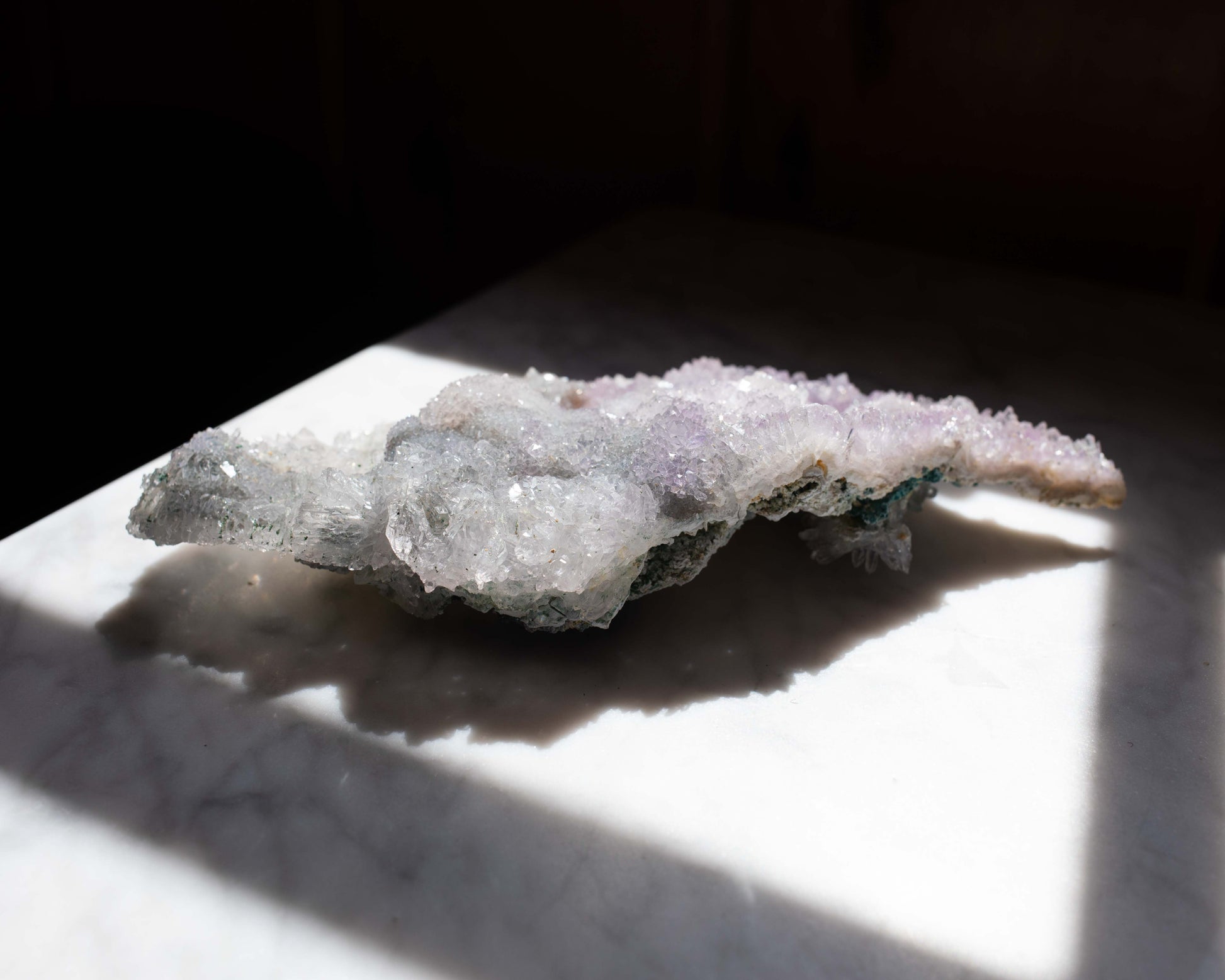 Amethyst is a member of the quartz family and is known to be a balancing & clearing stone. It is said that it can help facilitate the transmission of lower frequency into higher energies & opens up the Third Eye & Crown chakras - perfect for meditation. Emotionally, it is thought to help one find the root of their causes behind certain thought patterns or behaviors such as addictions. Throughout history it has been used to promote sobriety. When it comes to sleep, it is said to be helpful for insomnia & recalling dreams, & is thought to be more powerful if one sleeps in an Amethyst triangle setup. Very frequently, this stone calls to people who are just beginning their work with crystals, but is one that even the most experienced crystal healers hold onto.