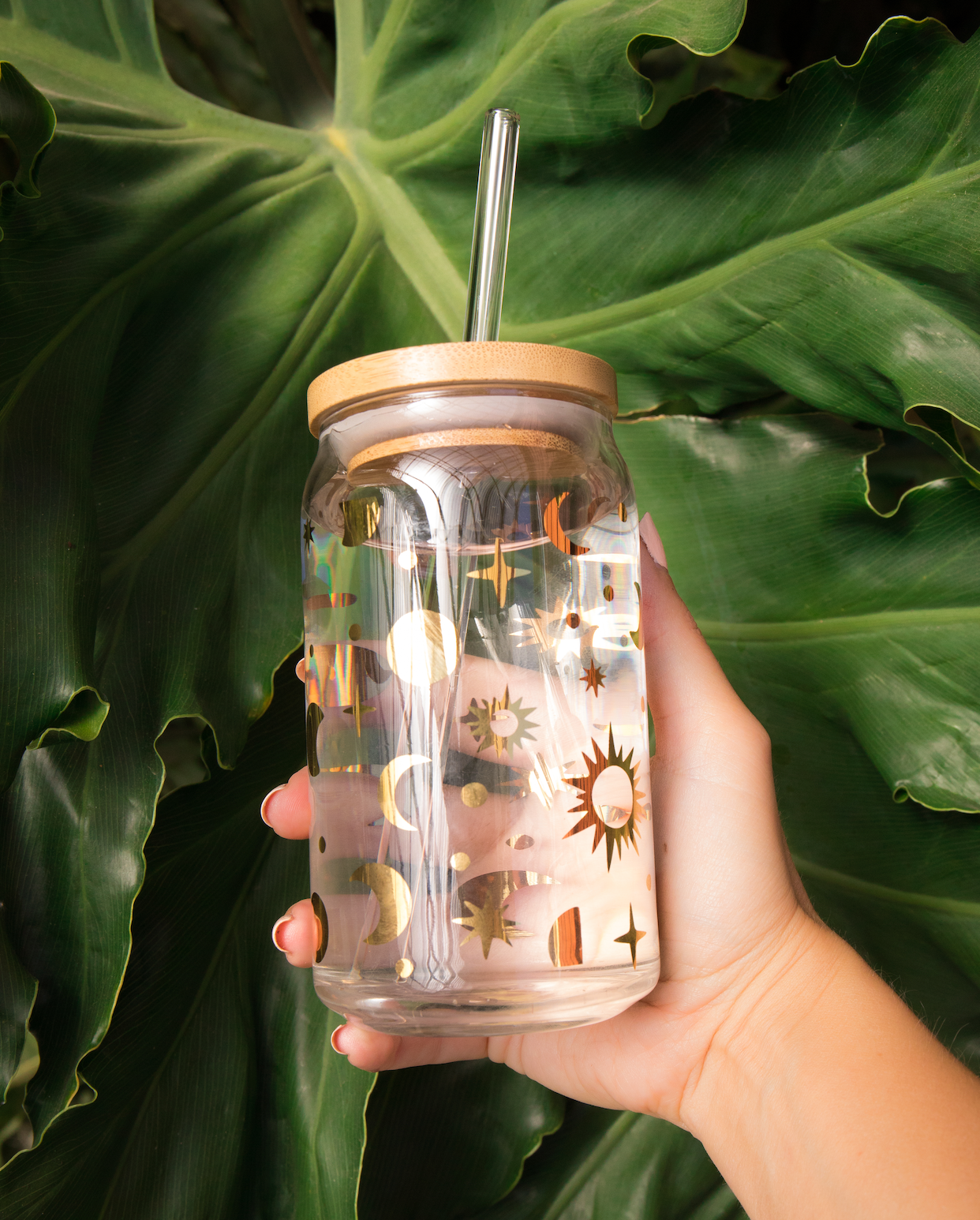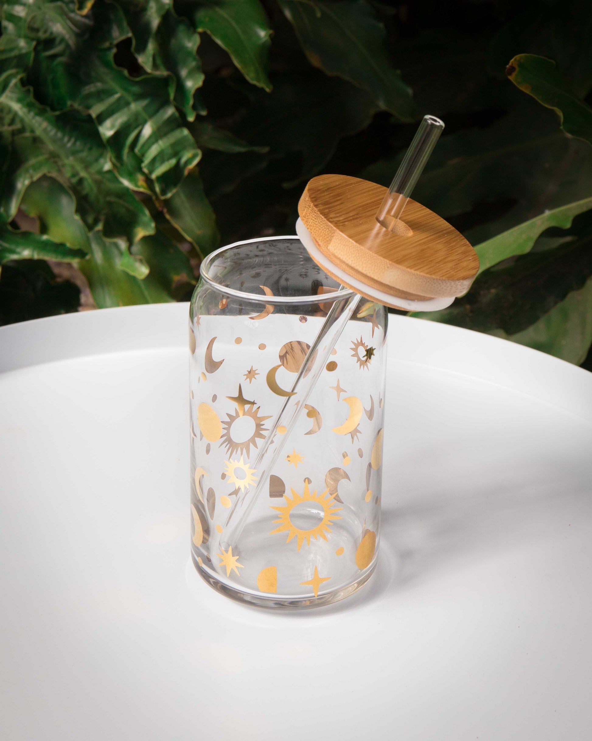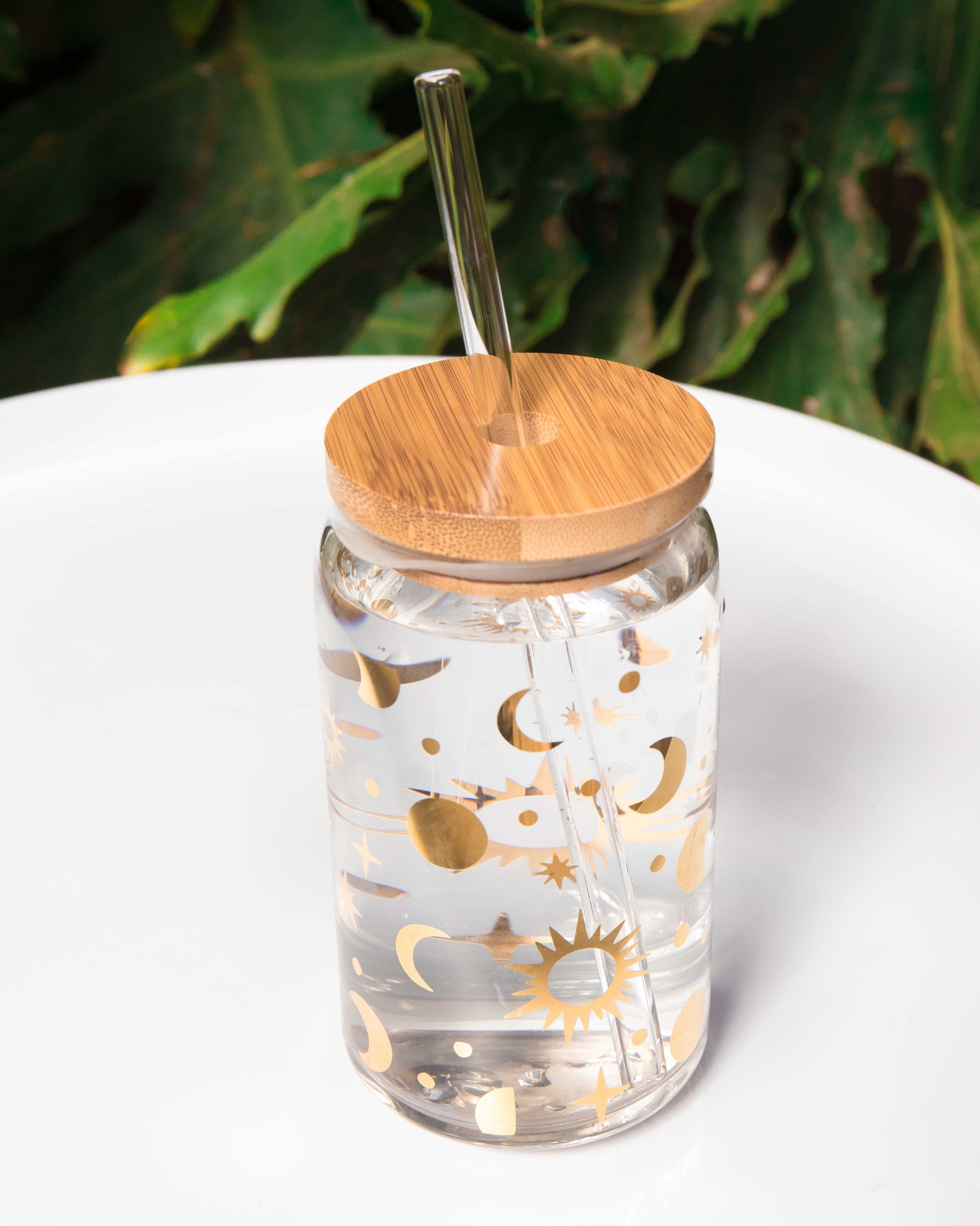 A magical vessel you will absolutely love to drink from. Use as a beautiful reminder to drink your water all day long or take your favorite beverage with you on the go! (yes, it fits in your cup holder!) They are 16oz and include a bamboo lid with a silicon ring (remove to wash) and a clear glass *bent* straw - photographs show a straight straw. (You can shop our colorful straws here.)