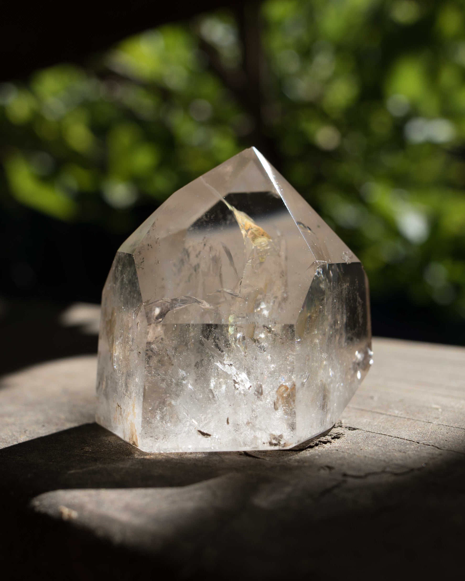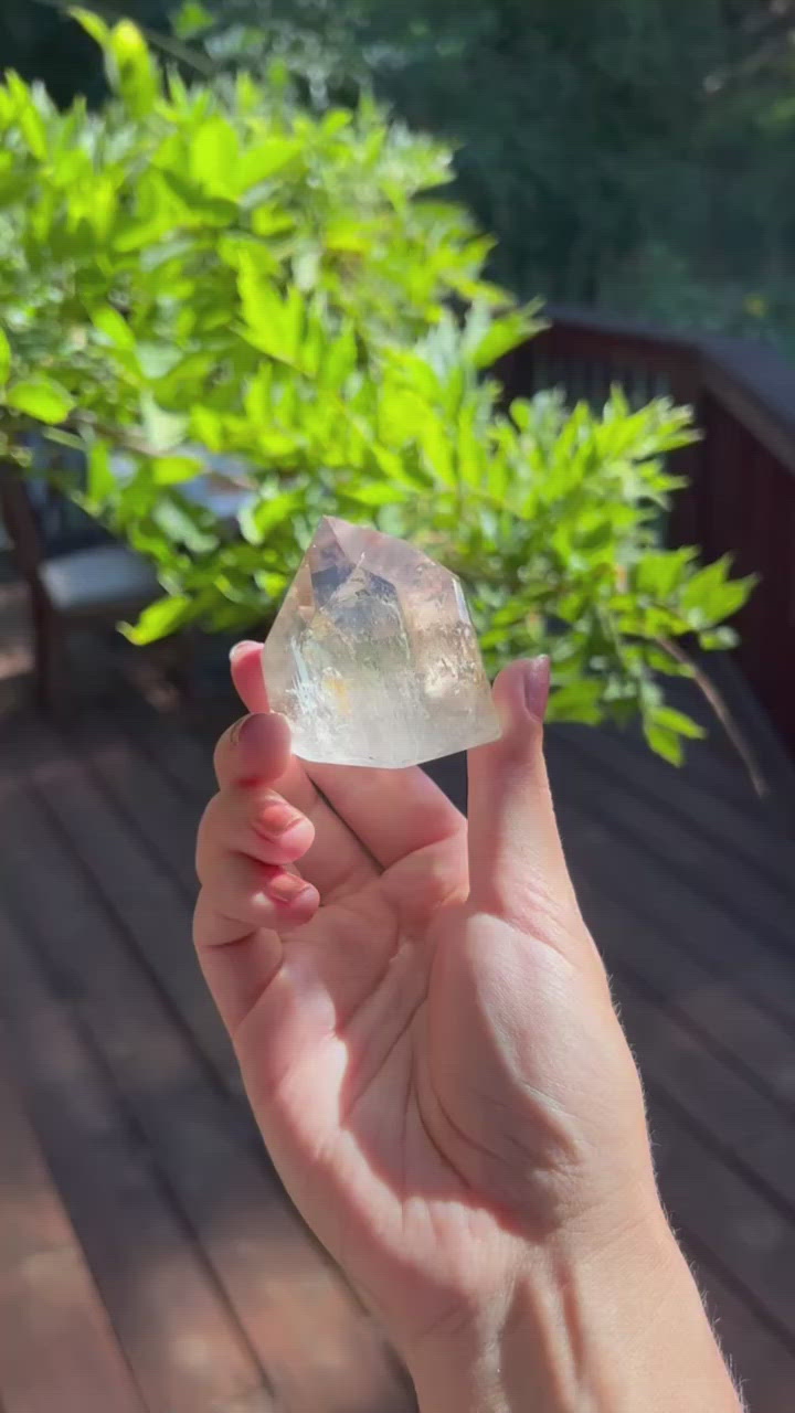 This one is gold in color. Some people refer to the golden hematite inclusions as Golden Healer Quartz. It measures about 2 x 2 x 1.75 inches and weighs 4.4oz