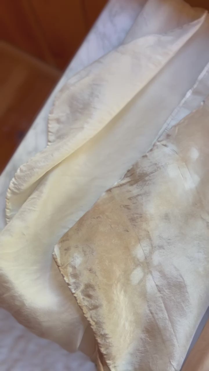 I am so excited to introduce to you our new line of plant dyed silks. Starting out with our scarves. Each one is botanically dyed by hand with the flowers and plants we grow or mindfully forage from the land we live on.