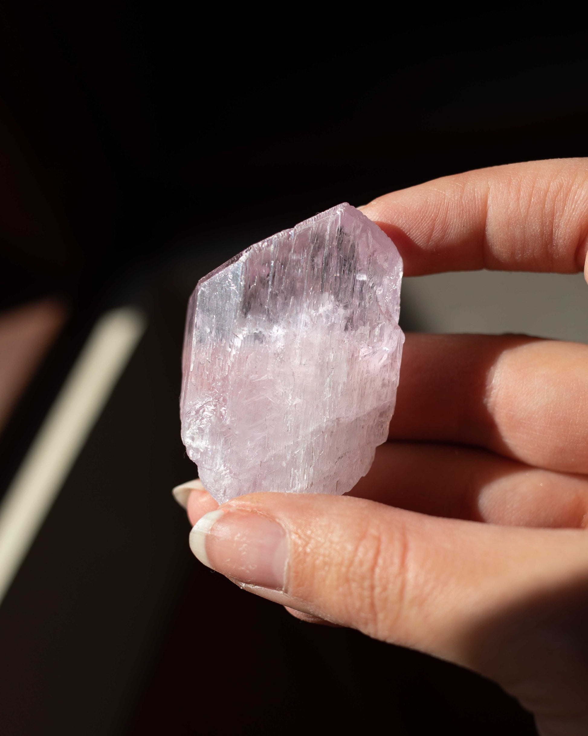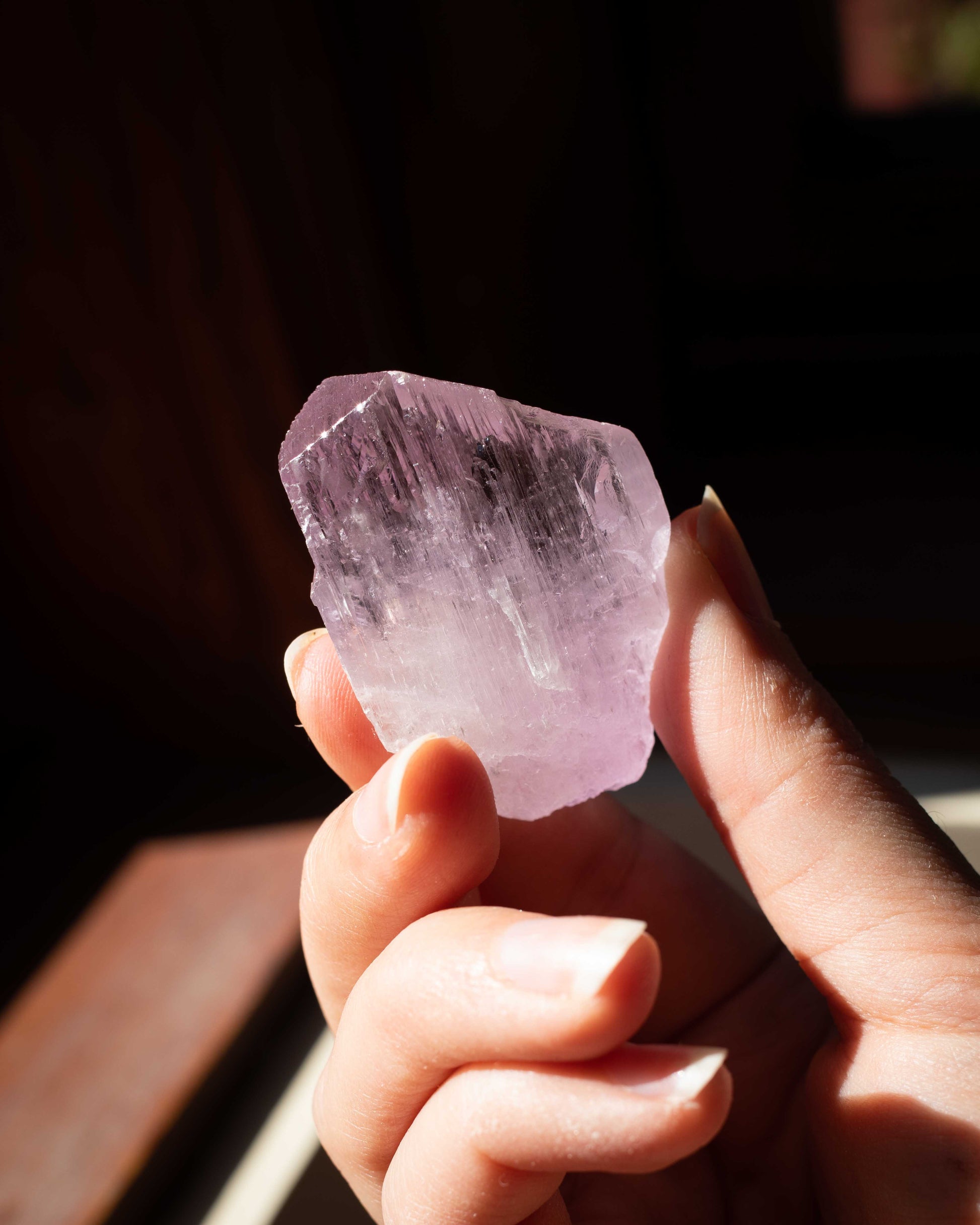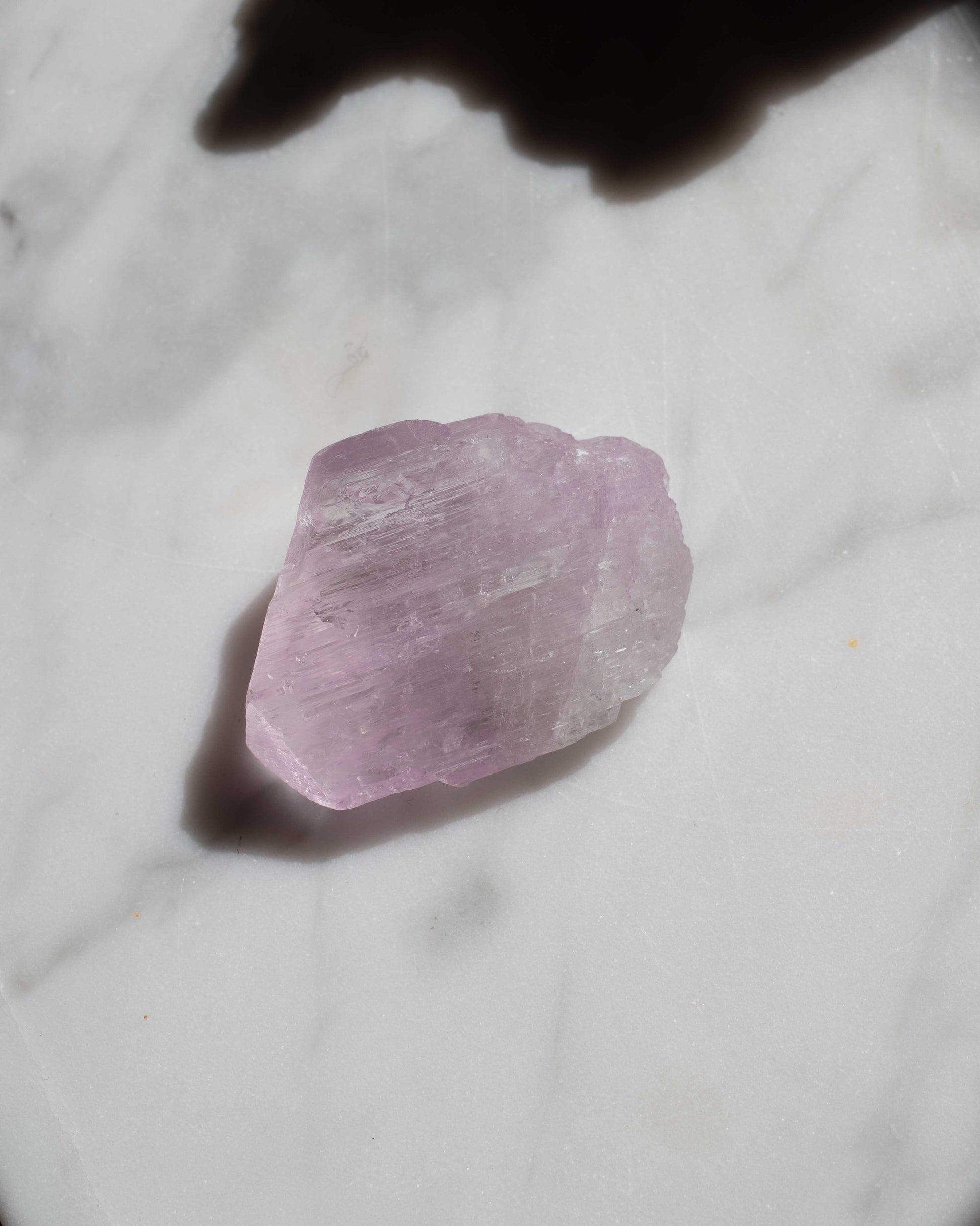 Kunzite is a pink form of Spodumene. It is believed to activate the heart chakra & align it with the throat and third eye chakras (energy centers). Said to be a good stone for those who have a hard time expressing their emotions & also promotes maturity in thoughts + actions, all the while allowing one to maintain the openness of a child.