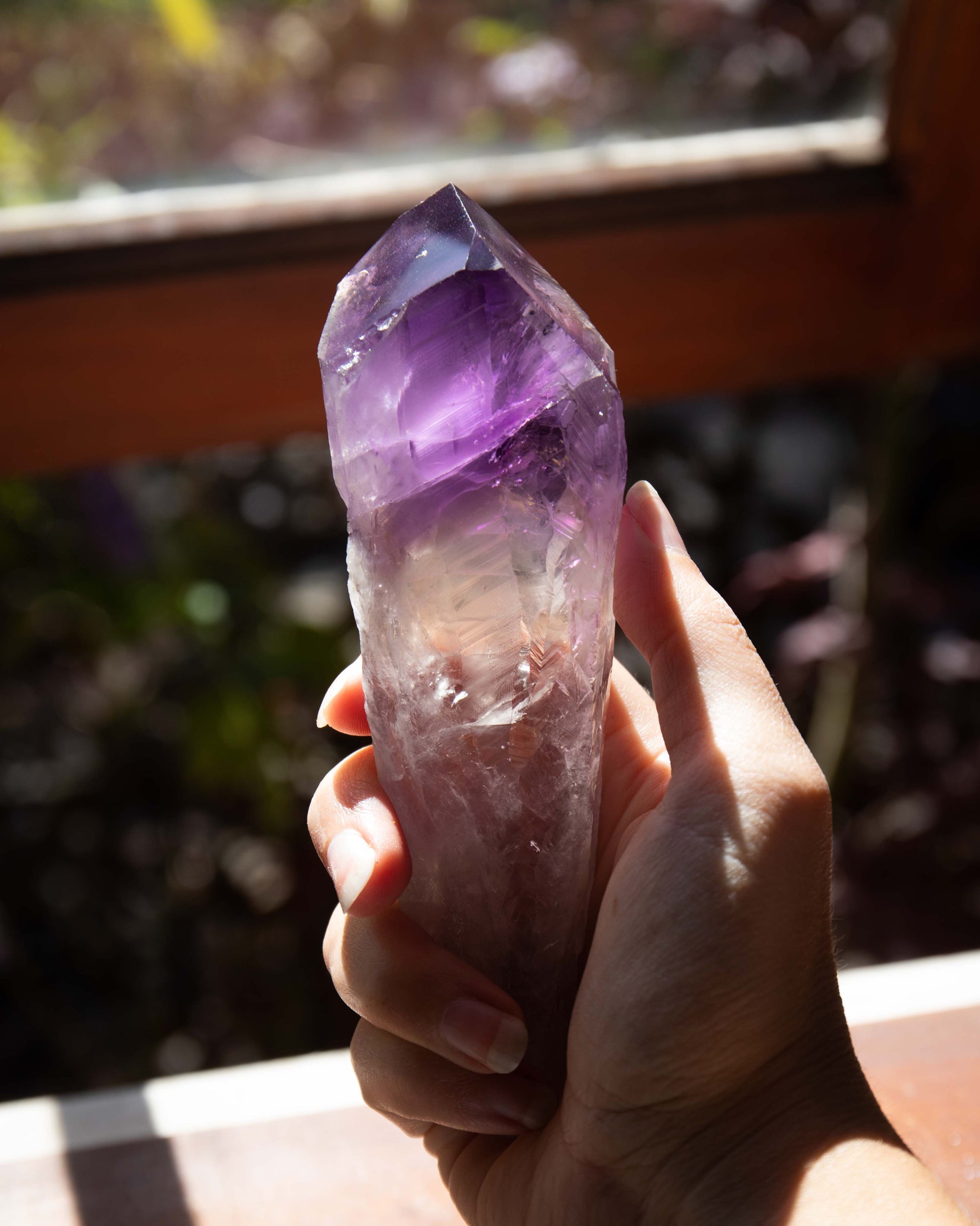 Amethyst is a member of the quartz family and is known to be a balancing & clearing stone. It is said that it can help facilitate the transmission of lower frequency into higher energies & opens up the Third Eye & Crown chakras - perfect for meditation. Emotionally, it is thought to help one find the root of their causes behind certain thought patterns or behaviors such as addictions. Throughout history it has been used to promote sobriety. When it comes to sleep, it is said to be helpful for insomnia & recalling dreams, & is thought to be more powerful if one sleeps in an Amethyst triangle setup. Very frequently, this stone calls to people who are just beginning their work with crystals, but is one that even the most experienced crystal healers hold onto.