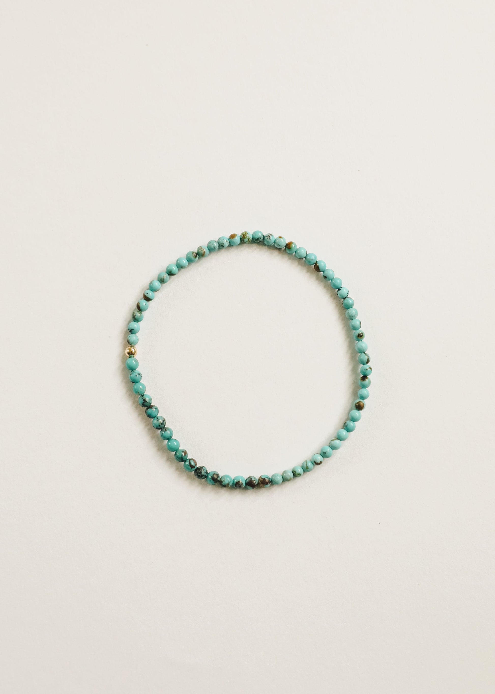 You will find 4mm natural turquoise beads, paired a single 14k Gold Filled bead, for a little touch of sparkle in your every day style!